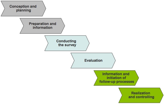 When implementing employee surveys, we focus on a six-tier implementation concept: